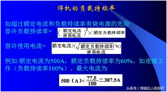 除了以上干伸長度對焊接的要求以外,對于送絲輪的使用可以參照上圖,焊接碳鋼、不銹鋼等實心焊絲采用的送絲輪為V型,焊接鋁合金或藥芯焊絲等材質(zhì)較軟的焊絲可采用U型輪,如果選擇錯誤,可能會出現(xiàn)送絲不暢,參數(shù)匹配有誤等問題,另外,對于焊絲來講,每一種焊絲都有其焊接范圍,比如,如果采用1.2Mm焊絲,要想焊接500A的電流,就是把調(diào)節(jié)電流放到最大500A,也只能出300多安的電流就是這個道理,要想焊到500A,只需要不絲徑加到1.6或更粗的焊絲即可。這也是防止焊機超負(fù)載使用的一個方法,比如采用60%占載率的氣保500焊機,如果長時間焊接,那么根據(jù)公式就只能得出380A以內(nèi)可以長時間焊接,為了避免焊工誤操作,可以選用1.2mm絲徑就不會出現(xiàn)超負(fù)載應(yīng)用了,具體公式算法及焊絲需用電流表如下: