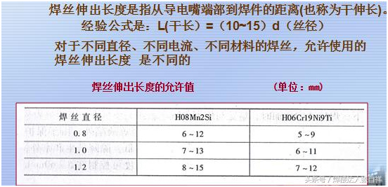 氣保焊的構(gòu)造如上圖所示,在焊接過程中干伸長度的計算是從導(dǎo)電嘴到工件的距離,而不是從噴嘴到工件的距離,根據(jù)電流的大小,干伸長短也有不同的要求,如超出規(guī)范會影響焊接的穩(wěn)定性和焊接質(zhì)量。
