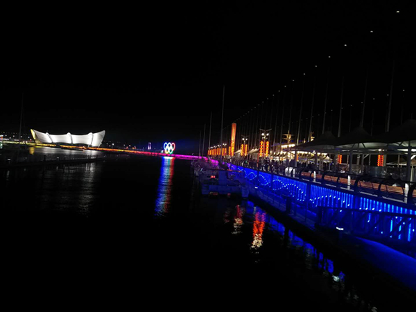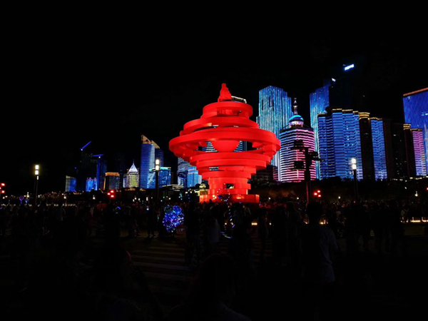 初秋的青島五四廣場,風景秀麗,氣候宜人,流光溢彩的燈光與蜿蜒曲折的海岸線相交呼應,讓游人在光影互動中感受青島的浪漫。