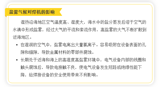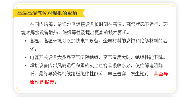國內(nèi)國沿海、沿江地區(qū)的焊接設(shè)備長時(shí)間在高溫、高濕、鹽霧狀態(tài)下運(yùn)行,這對焊接設(shè)備散熱、絕緣等性能提出了更高的技術(shù)要求。為了滿足充分滿足客戶的需求,時(shí)代公司推出了耐鹽霧型NB-500(A160-500)半自動氣保焊機(jī)。