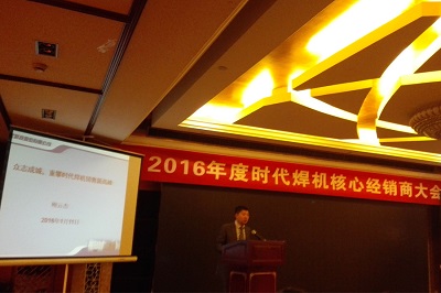 北京時代科技股份有限公司2016年度全國經(jīng)銷商大會于元月10日至12日在天津召開,本次會議的主題是“眾志成城,重攀時代焊機銷售新高峰”。