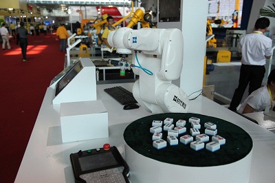 該系統(tǒng)由TIME R3-660時(shí)代工業(yè)機(jī)器人配置視覺識(shí)別系統(tǒng)組成,實(shí)現(xiàn)了視覺抓取、搬運(yùn)的輕松化。整套系統(tǒng)采用高效的圖像識(shí)別算法,能夠?qū)ψト∥镞M(jìn)行特征識(shí)別和位置定位。此款機(jī)器人在展會(huì)現(xiàn)場(chǎng)快速移動(dòng)識(shí)別棋牌,小巧精美的形象甚得觀眾的喜愛。