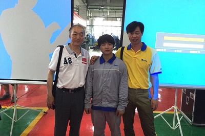 4:時代首席高級技師(右)與焊接專家(左)、世界冠軍曾正超(中)